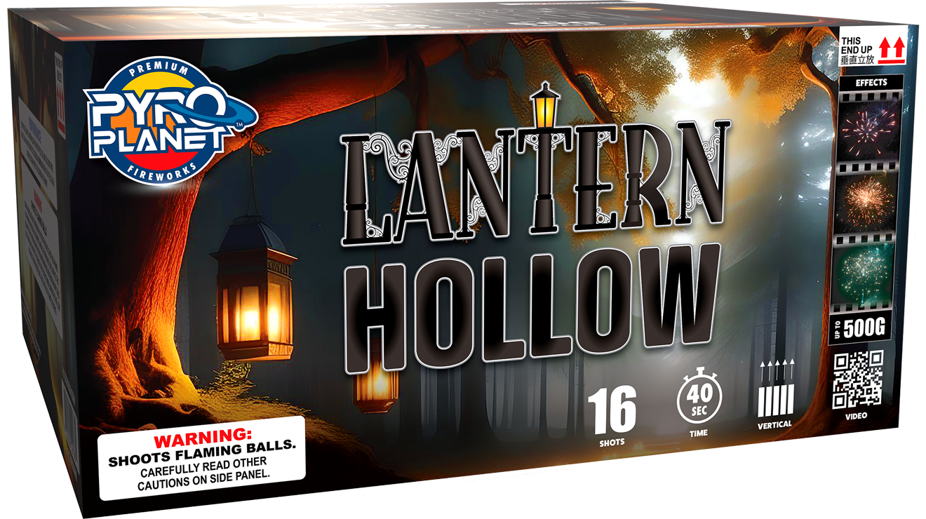 Step into the glow of Lantern Hollow! 16 shots of Red, Blue, and Gold burst with Crackle, Dahlia, and Strobe effects, creating a mesmerizing display that feels like a lantern-lit dream. Perfect for lighting up the night!