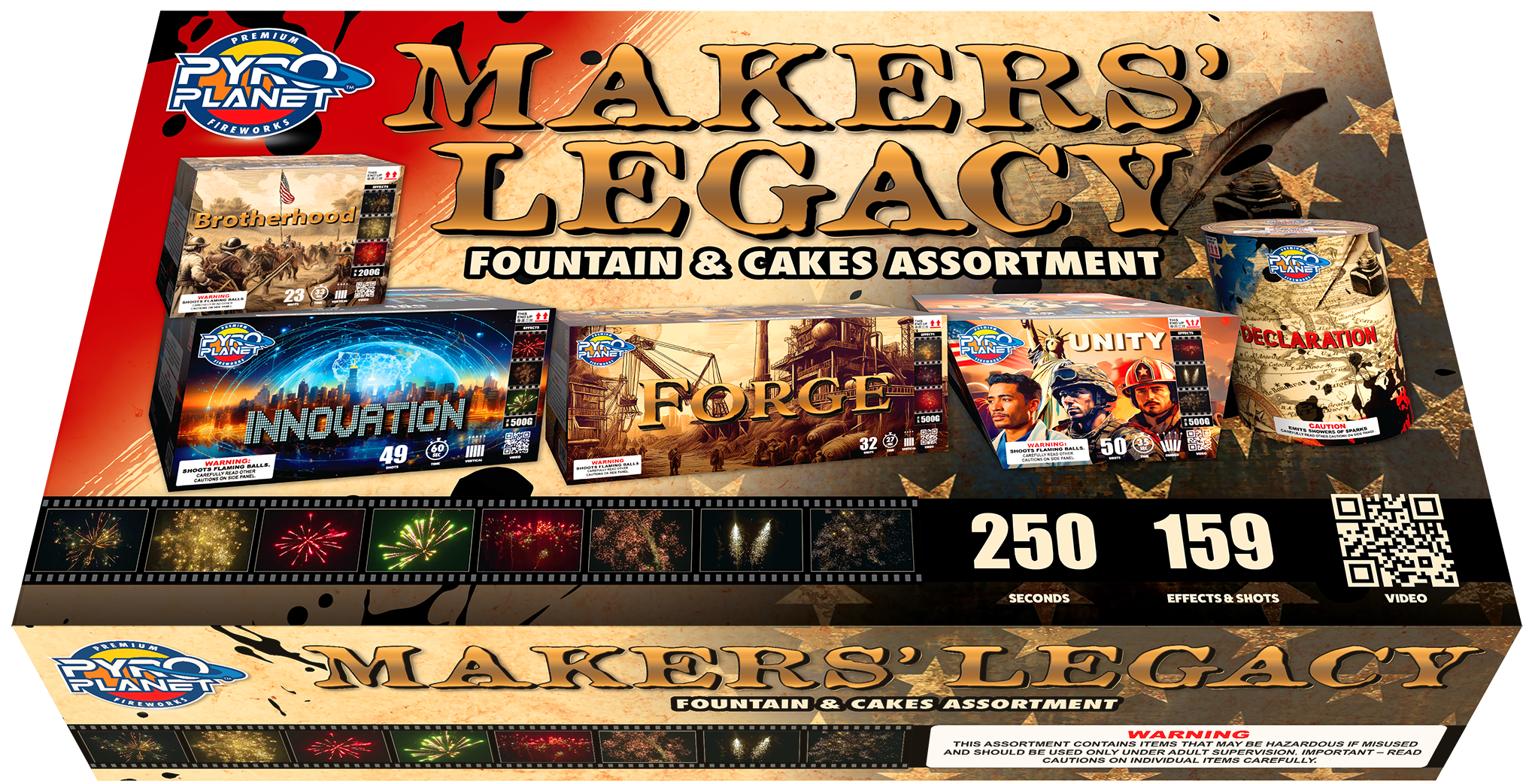 Celebrate 250 years of bold ideas and unbreakable bonds. Makers’ Legacy includes 1 symbolic fountain (Declaration) and 4 powerful cakes: Brotherhood, Forge, Unity, and Innovation – honoring the spirit, strength, and vision that built a nation.